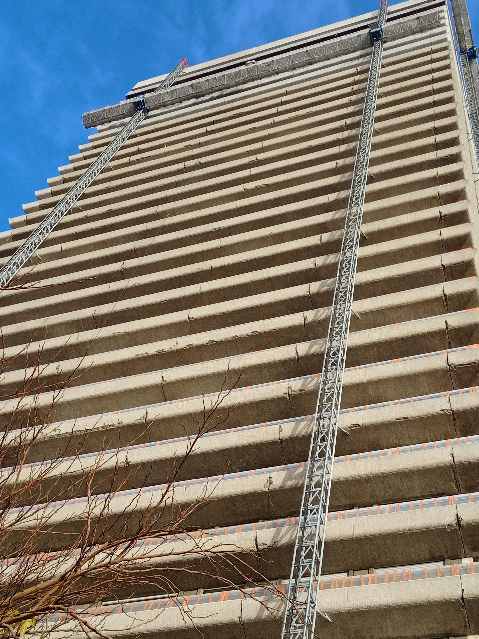 Quelques semaines après l’accident, on ne voit plus de trace des brûlures : les traînés noires de l’explosion ont été rapidement repeintes. Le calme est revenu dans la tour mais les habitants restent marqués par l’événement. A l’image de cette jeune résidente d’une trentaine d’années qui s’apprête à entrer dans le hall, son bébé dans une poussette.